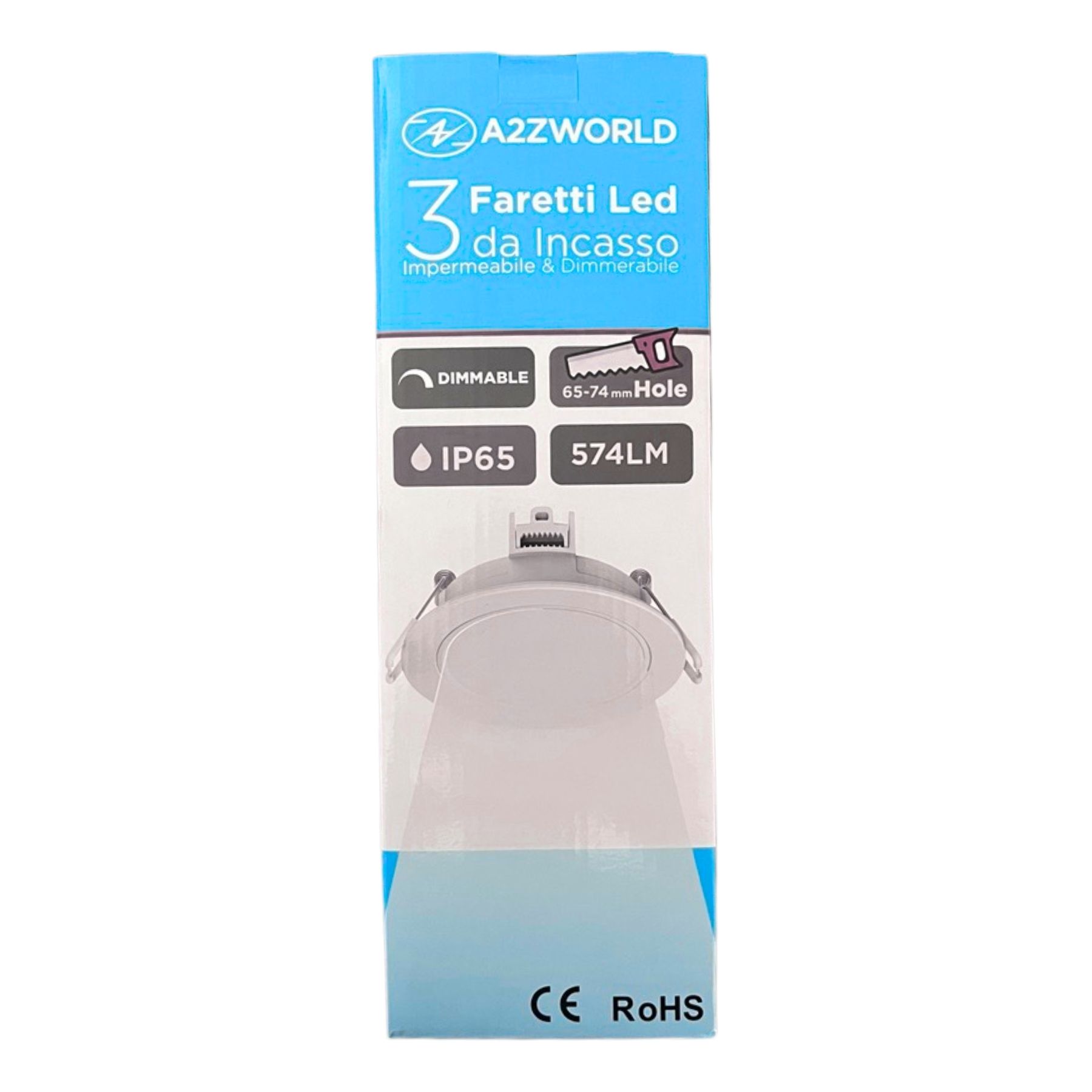 3 Faretti LED da Incasso Dimmerabili 5W 220V Rotondi Bianchi 3000K D87mm H36mm Foro 70mm IP65