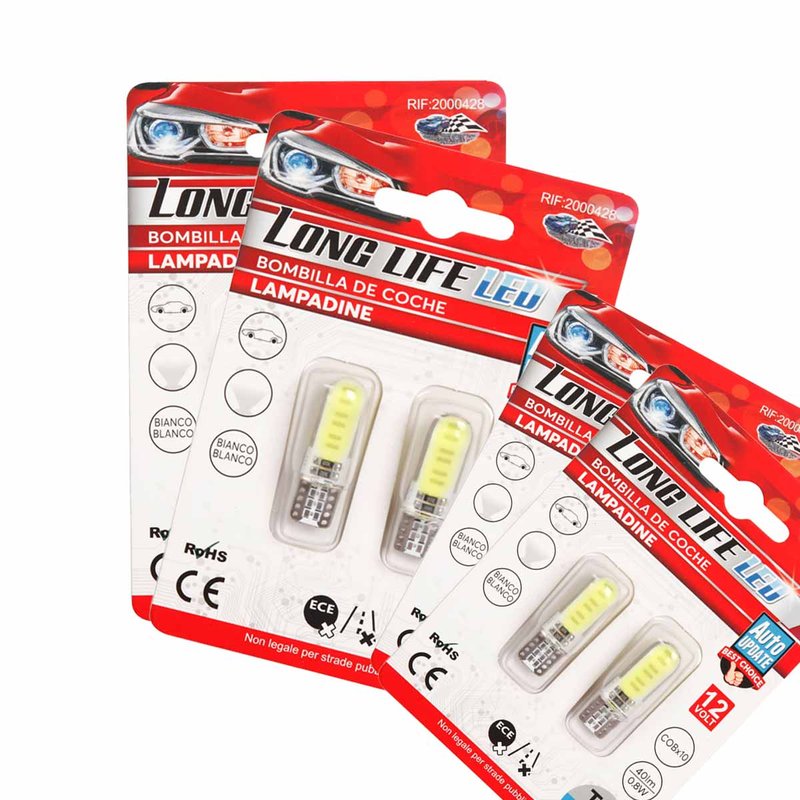 8 Pezzi Lampada Led T10 W5W 10 COB 12V 0.8W 40lm Bianco Freddo 6500K 32mm