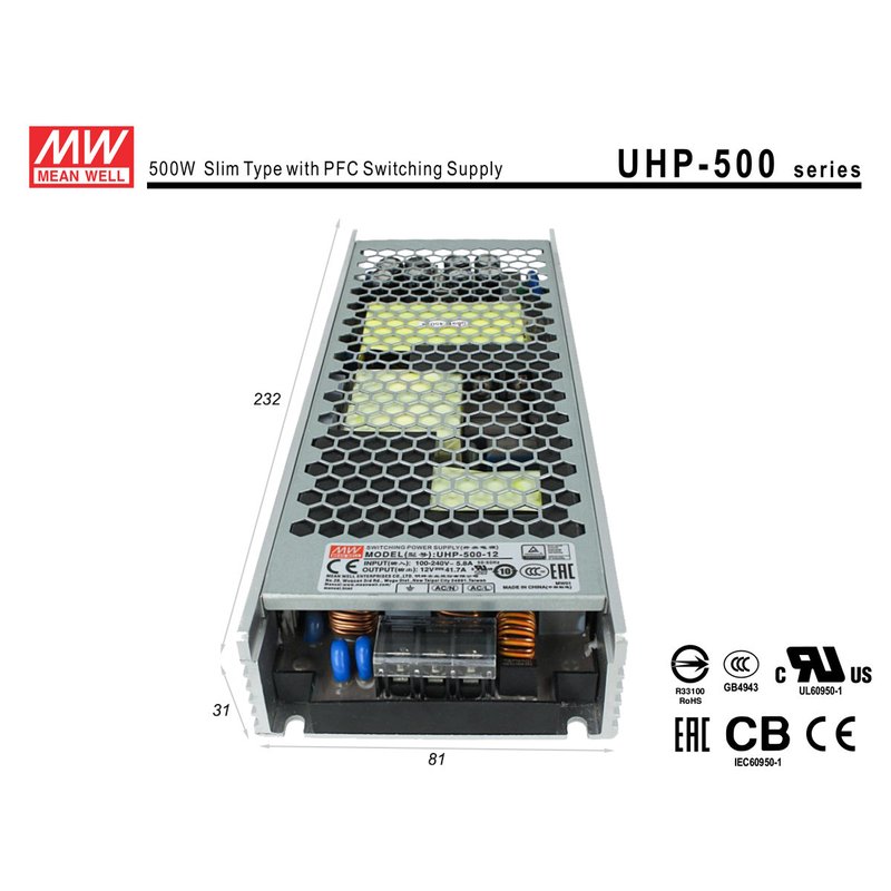Alimentatore MW MEAN WELL CV 12V 500W 41,7A Senza Ventola UHP-500-12 Trasformatore Da AC 220V A DC 12V Per Luci Led Interno