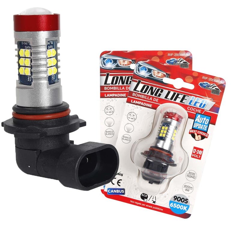2 Pezzi Lampade LED HB3 9005 12V 24V 15 SMD 3030 400lm 8W Bianco Freddo per Fendinebbia H60mm
