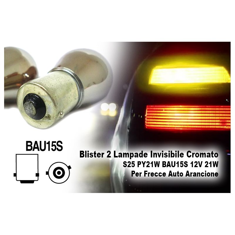 Blister 2 Lampade S25 PY21W 12V 21W Cromate Invisibili Frecce BAU15S Auto