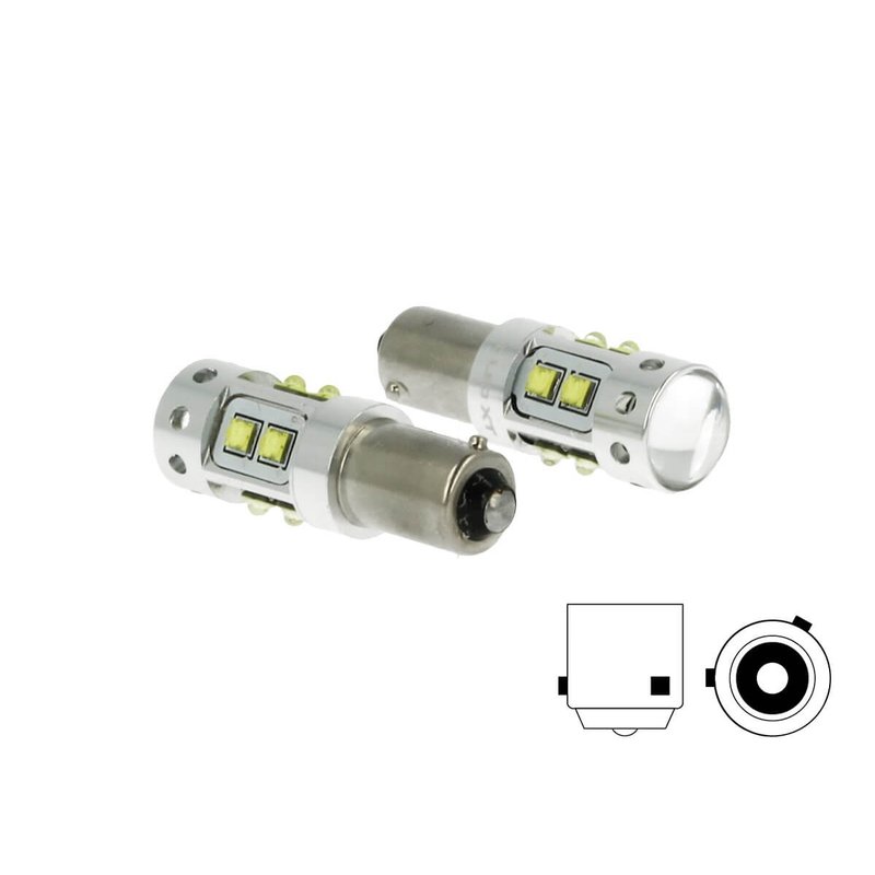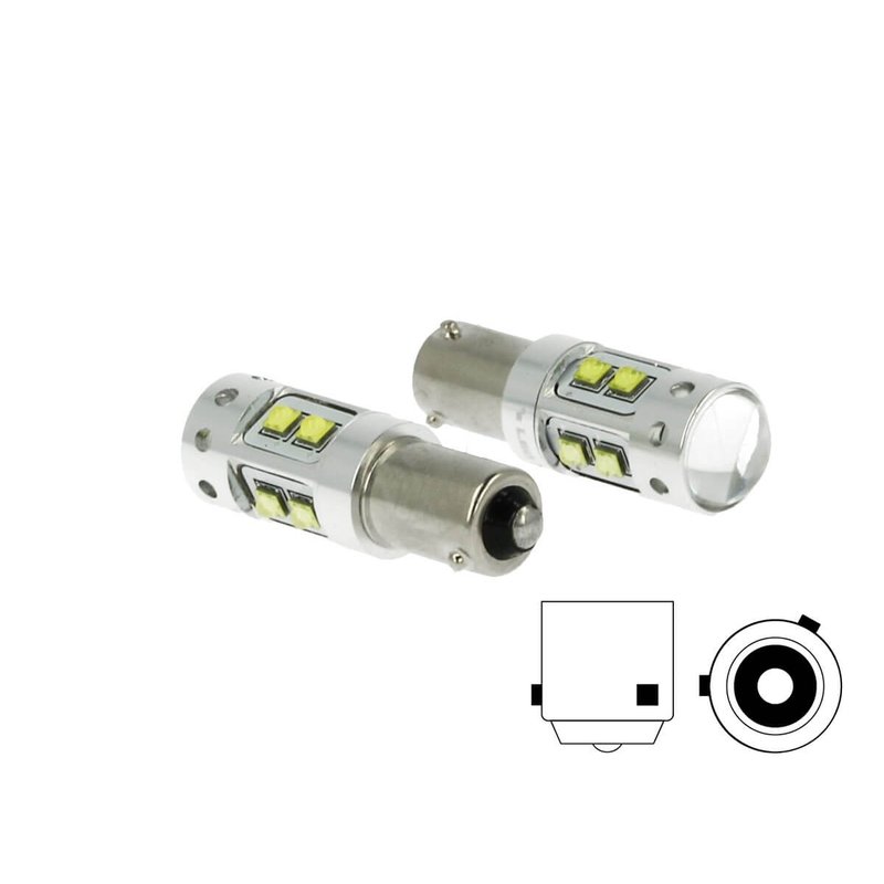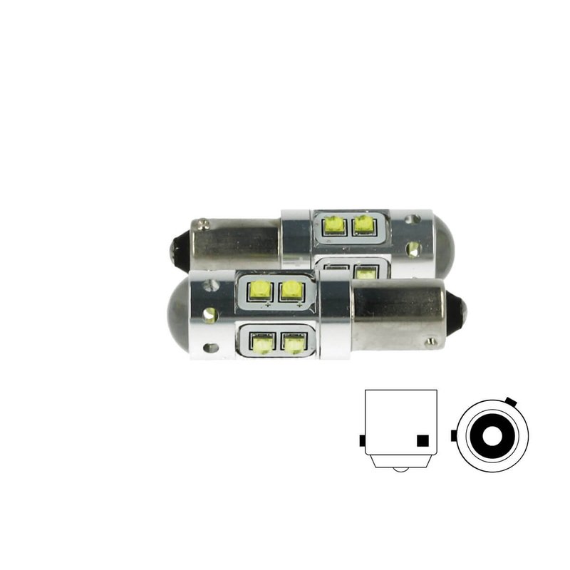 Lampada Led H21 BAY9s H21W 12V 50W Arancione 10 Smd Cree Piedini Sfalsati Per Frecce