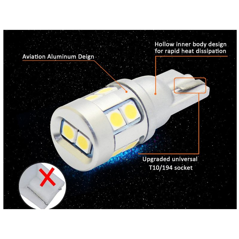 Lampada Led T10 W5W Canbus 12V 3W No Polarita 600 Lumen 360 Gradi