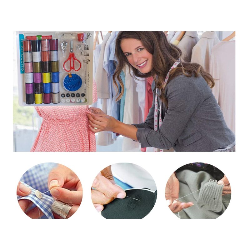 - Kit Per Cucire Dotato Di 24 Rocchetti Di Filo Assortiti, Forbici, Bottoni, Aghi, Metro, Dispositivo Infilatura, Spillette E Ditale.