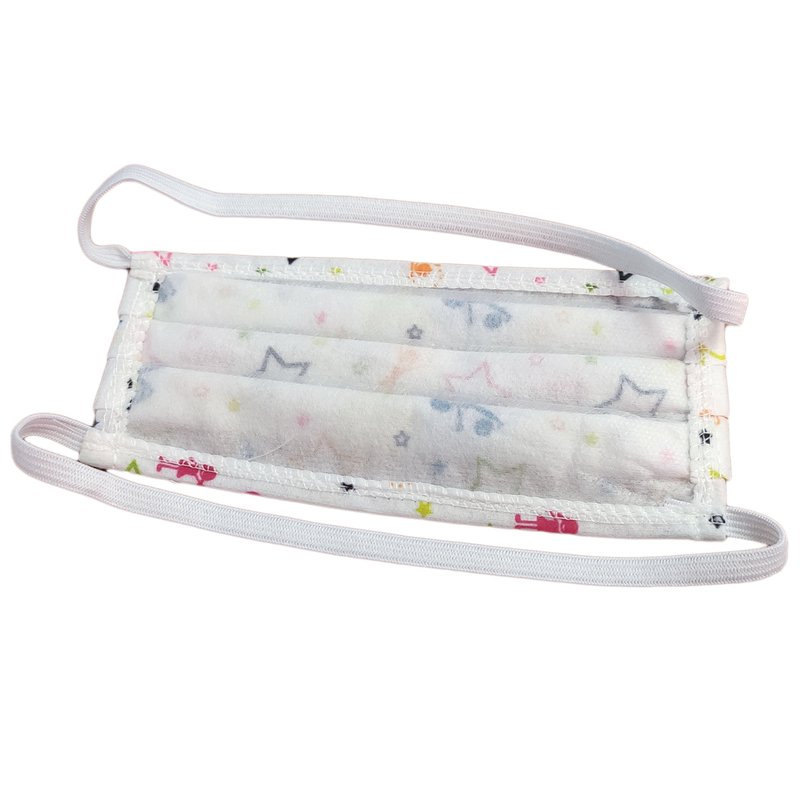 4 Mascherine Per Bambini Disegno Stella Colore Bianco Made in Italy Tessuto TNT