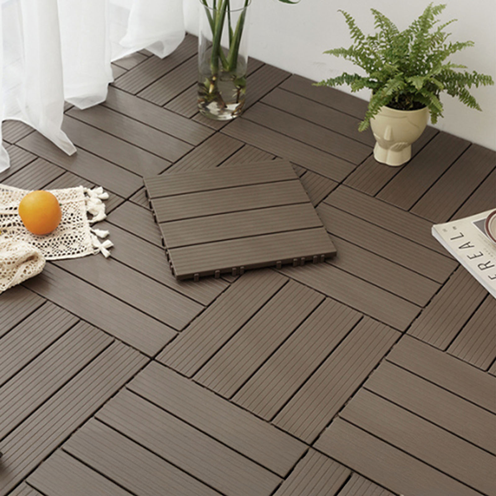 10 Pezzi Piastrelle Plastica Giardino 30x30x2cm Pavimento Esterno PVC Nero Caffè