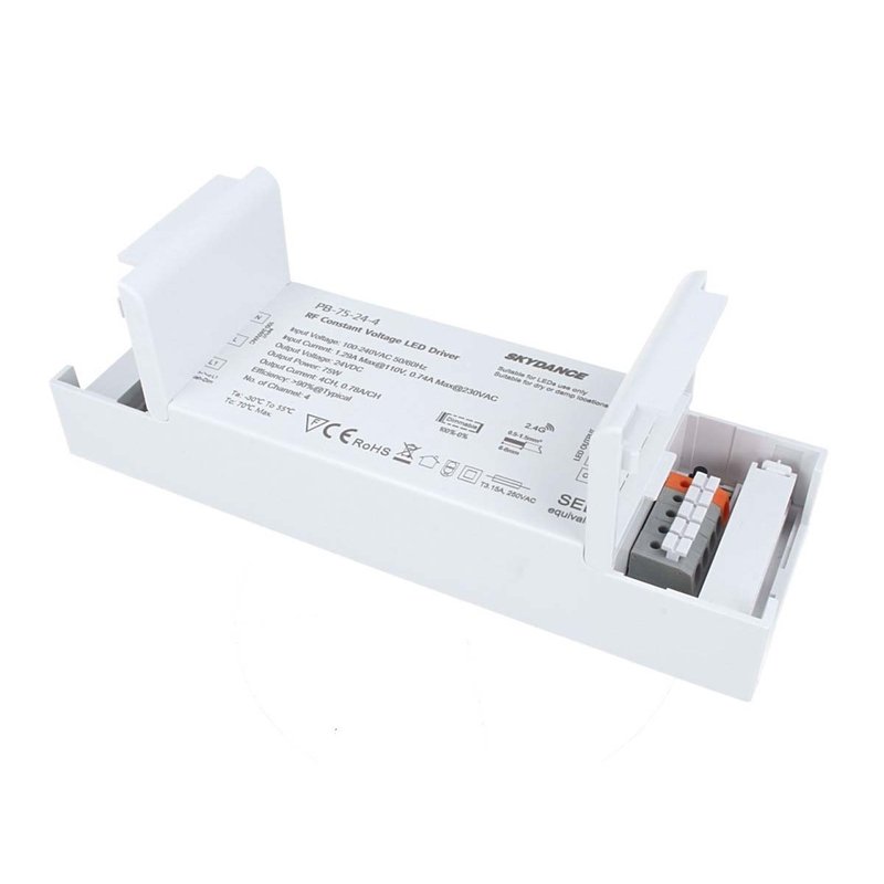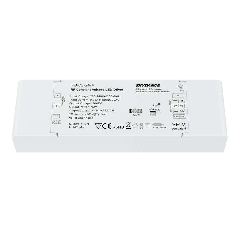 - Driver LED 4 Canali RF Alimentatore Trasformatore CV Voltaggio Costante Dimmerabile 2 in 1: Push Dimmer(Pulsante N.O. Normalmente Aperto) + Telecomando RF 2.4G(Escluso)