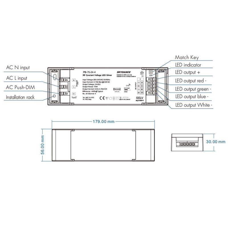- Dimensione 179X56X30mm(L*W*H), Abbinabile A Telecomando RF 2.4G Monocolore, Doppio Colore E RGB/RGBW.