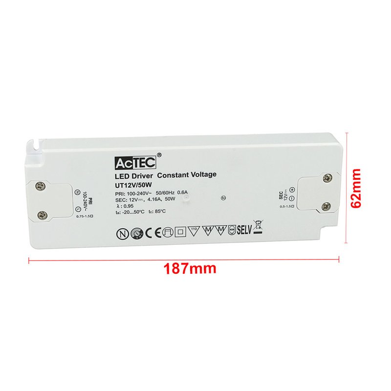Alimentatore Trasformatore CV Slim 12V 50W 4,16A Voltaggio Costante 187x62x22mm