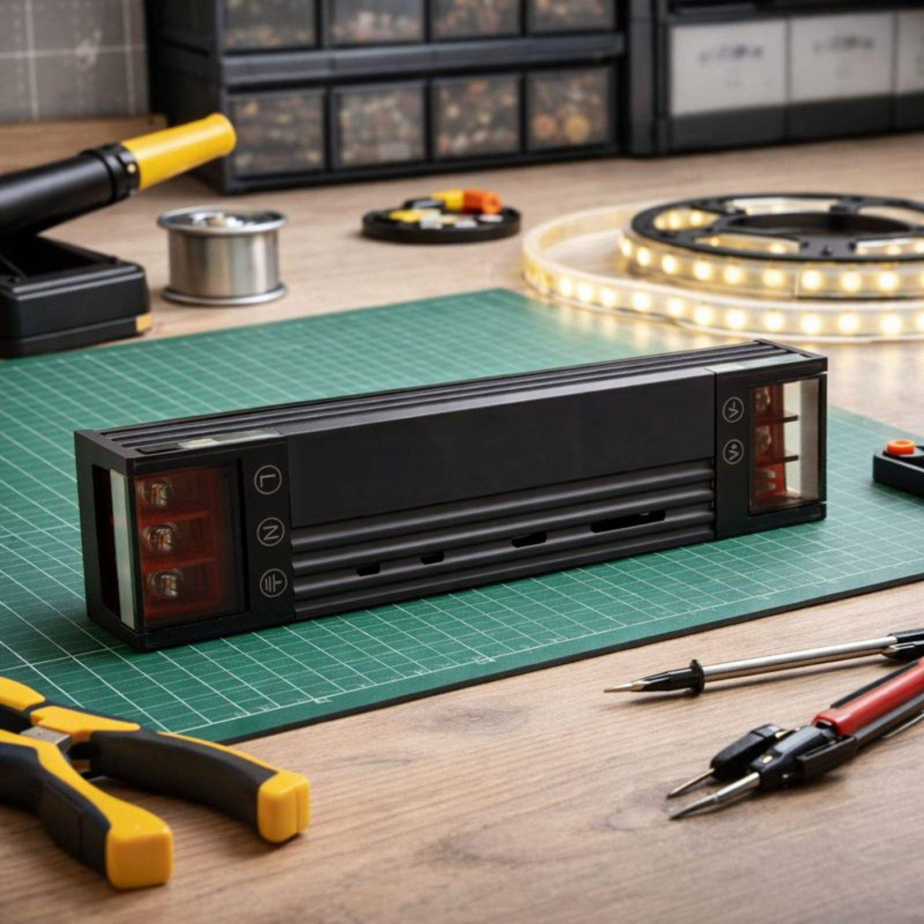 - Progettato per installazioni interne grazie al grado di protezione IP20, con corpo compatto e ventilato per una dissipazione termica efficace. 196X35X25mm