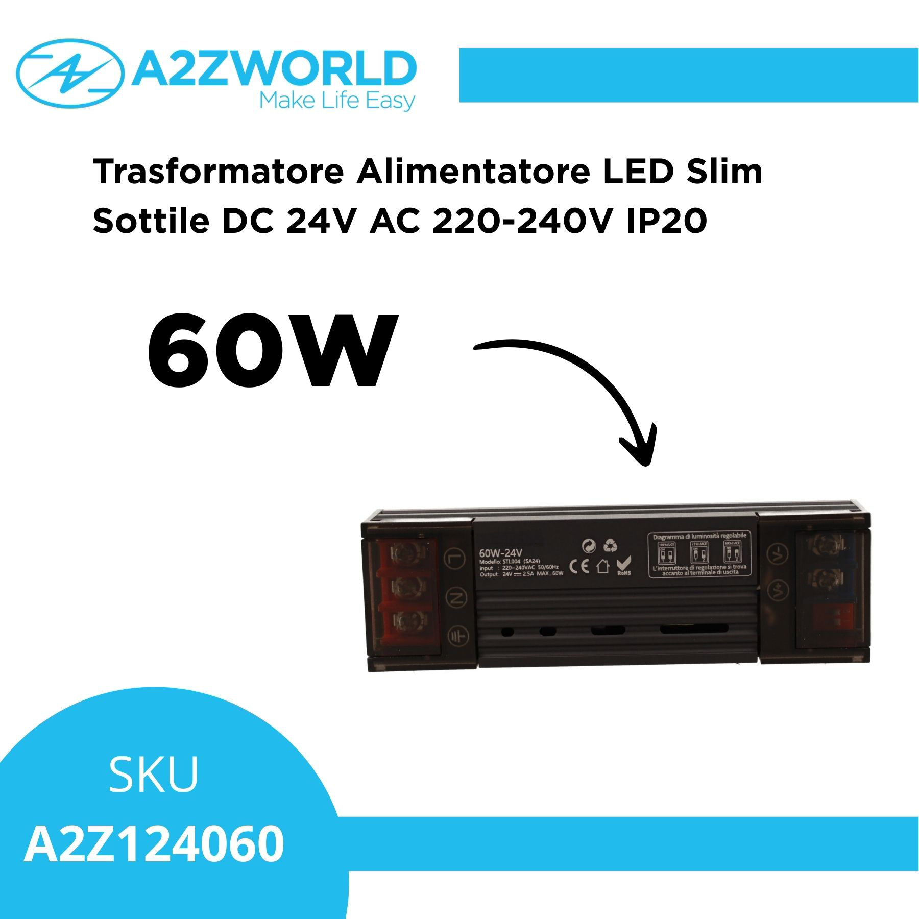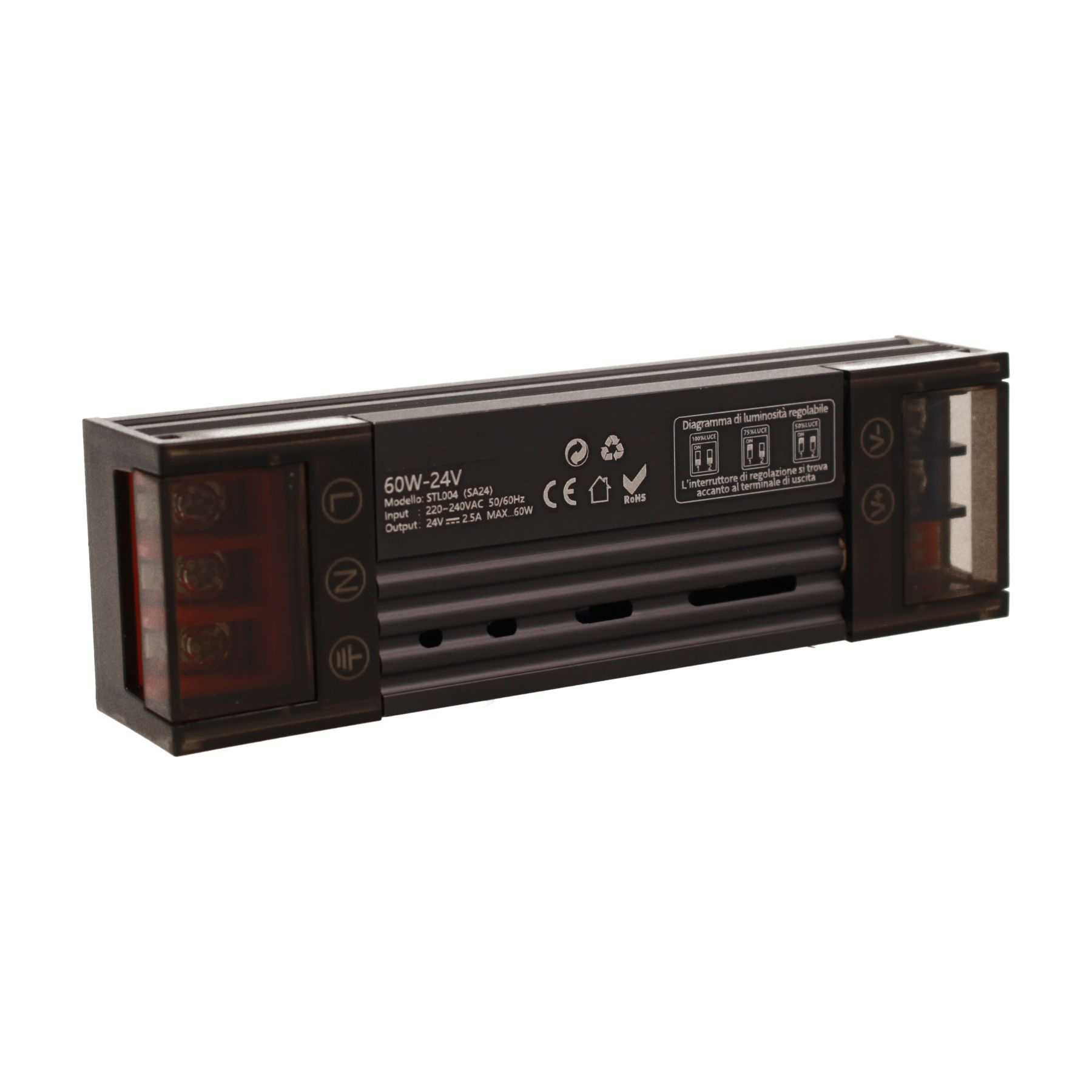 Trasformatore Alimentatore LED Slim Sottile 60W DC 24V AC 220-240V IP20 Dimmerabile a DIP con Coperchio Protezione su Morsetti 119x35x25mm