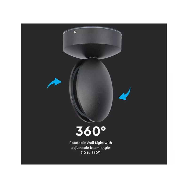 Applique Lampada LED da Muro o Soffitto 7W 3000K Carcassa Nera Fascio Stretto 360 Gradi IP65 SKU-8219