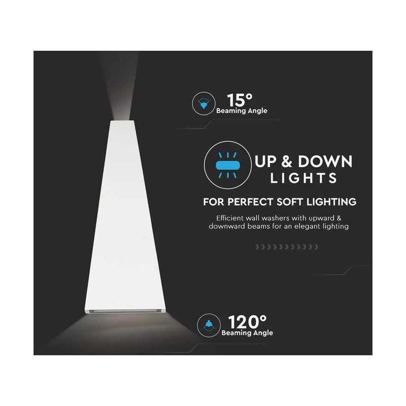 Applique Lampada LED da Muro Piramide 6W 4000K Carcassa Bianca Doppio Fascio Luminoso Up-Down IP65 SKU-8296