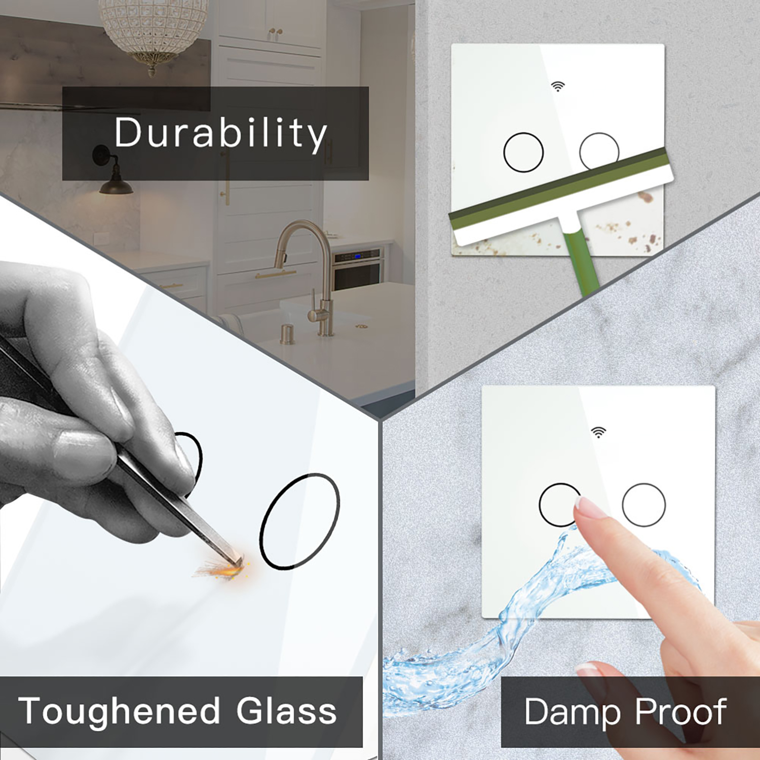 Interruttore Da Parete Touch 2 Tasti, WIFI 2.4G+BLE+RF 433MHz, Bluetooth BLE Mesh, TUYA, Smart Life, 10A, AC 90-250V, 50/60HZ, 86X86X30mm Per Scatola 502, IP20, Bianco, SH9442W