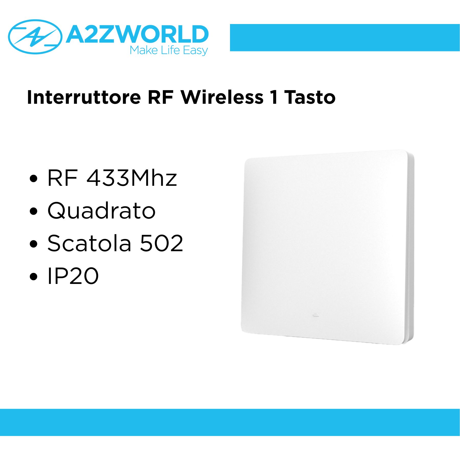 - Design compatto con 1 tasto quadrato, ideale per l’installazione in scatola 502, perfetto per impianti nuovi o ristrutturazioni senza opere murarie