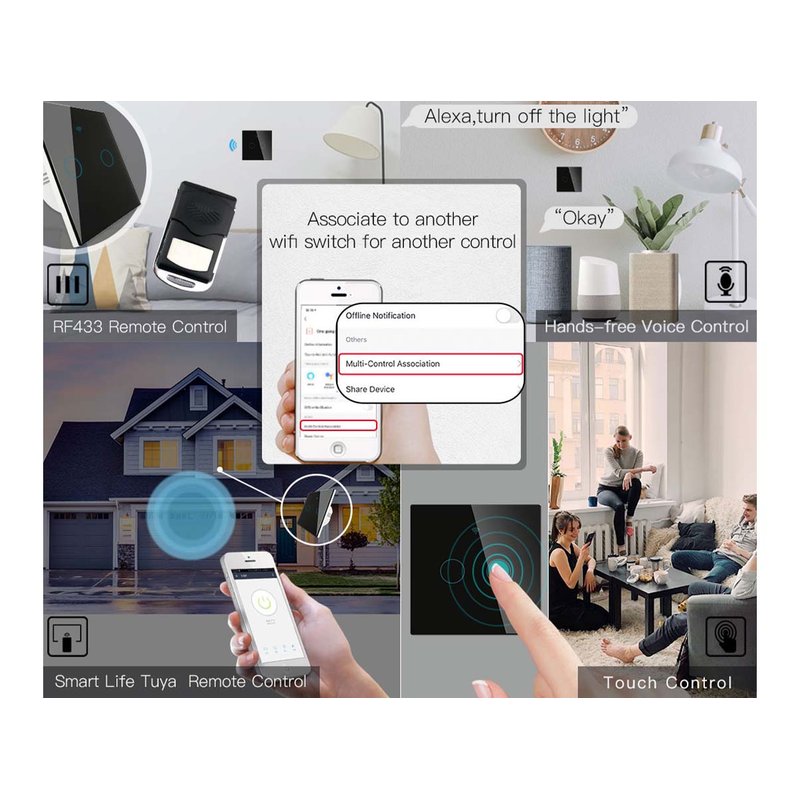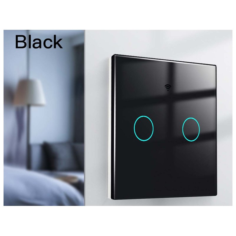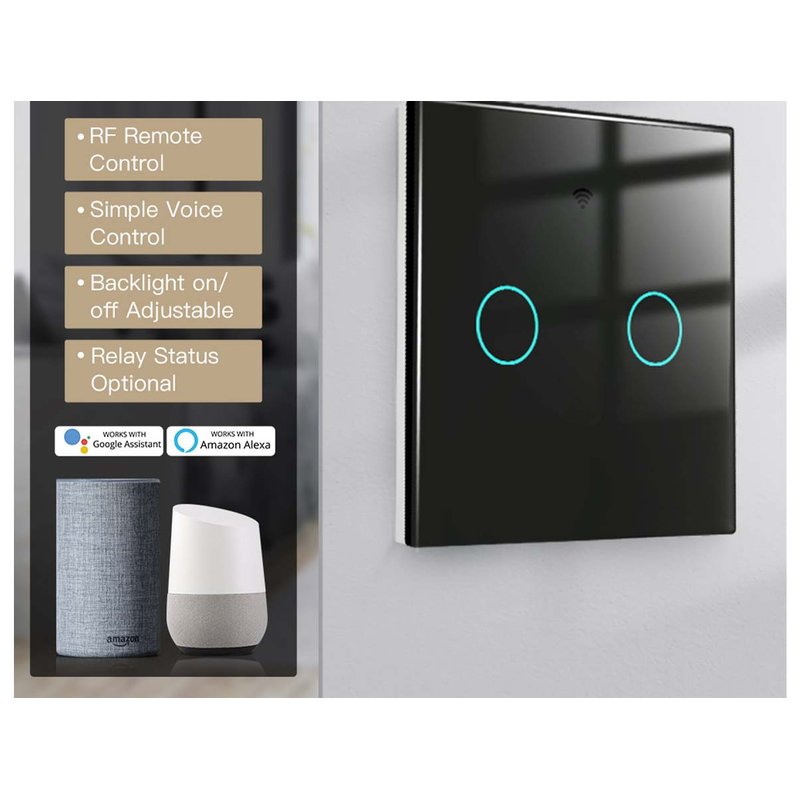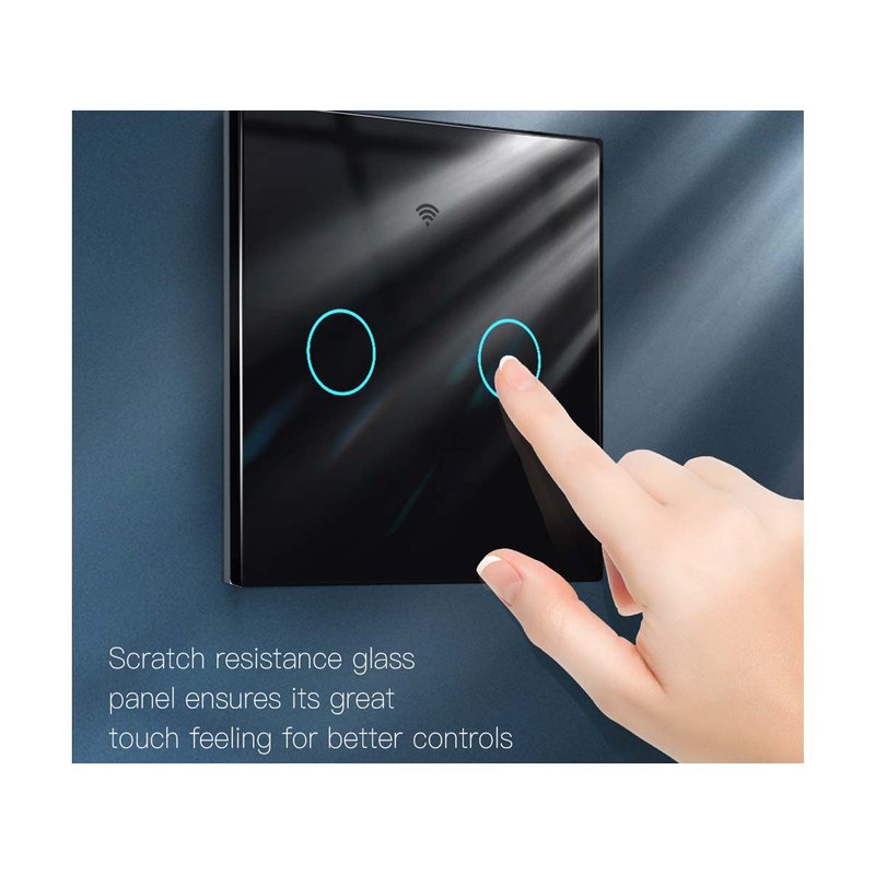 Interruttore Wifi Da Parete 86X86 Pannello Touch 2 Tasti Colore Nero WiFi + RF 433 Compatibile con Amazon Alexa e Google Home