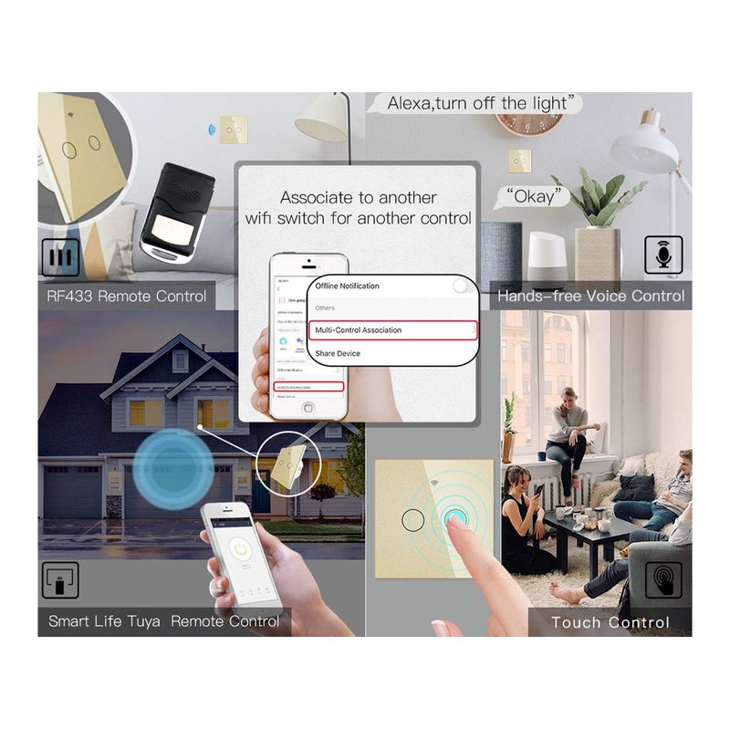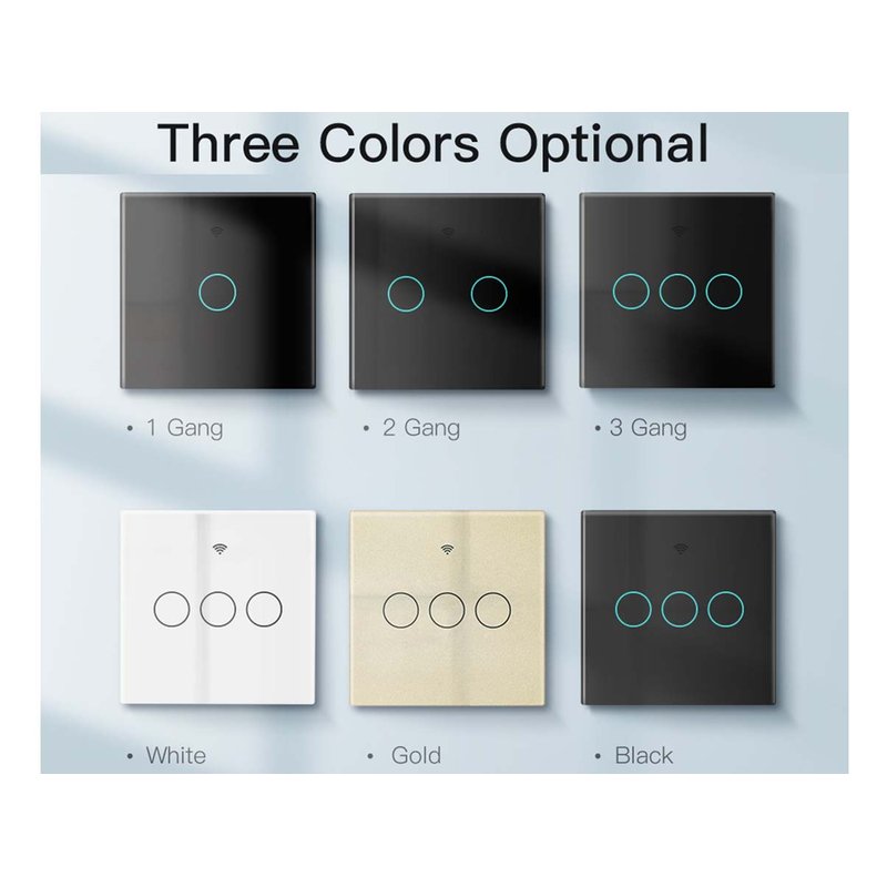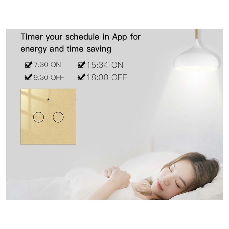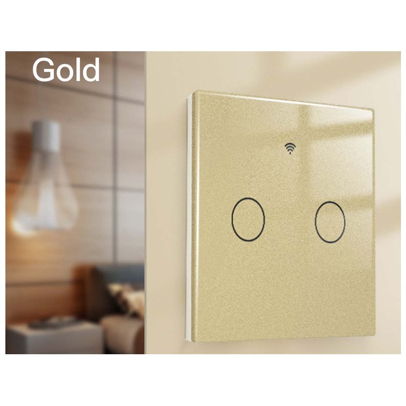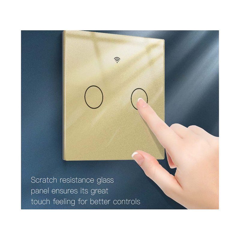 Interruttore Wifi Da Parete 86X86 Pannello Touch 2 Tasti Colore Oro WiFi + RF 433 Compatibile con Amazon Alexa e Google Home