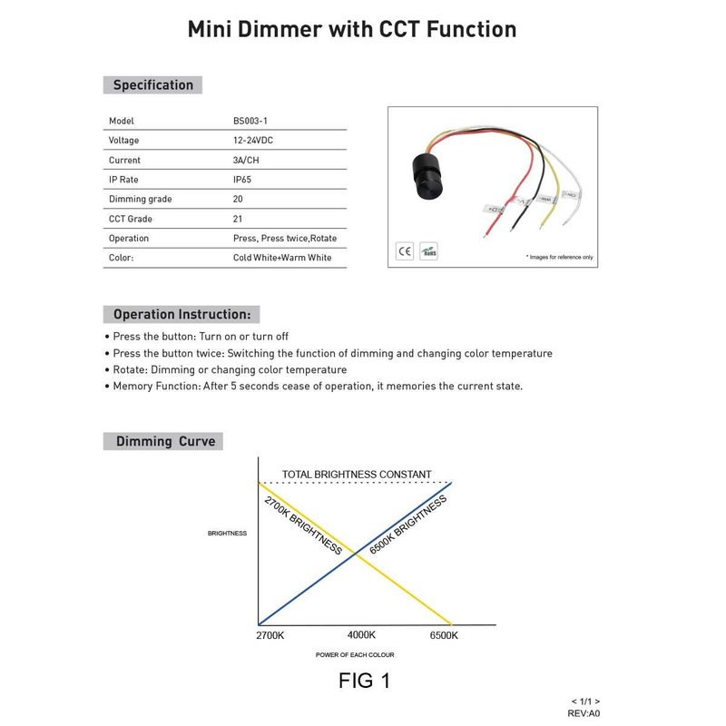Micro Pulsante Illuminazione LED con Funzione Dimmer CCT con Memoria 12-24VDC Corrente 3A/CH IP65 Interruttore Controllo Versatile dell’Illuminazione con Doppio Click Rotazione del Pulsante