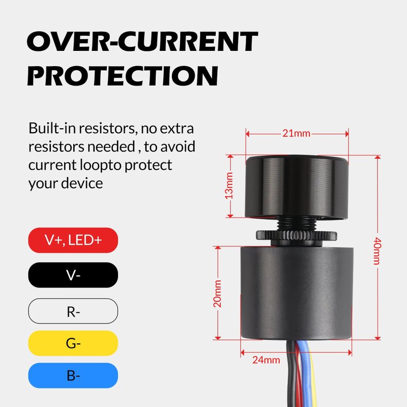 Micro Pulsante Illuminazione LED RGB con Funzione Dimmer CCT con Memoria 12-24VDC Corrente 3A/CH IP65 Interruttore Controllo Versatile dell’Illuminazione con Doppio Click Triplo Click e Rotazione del Pulsante