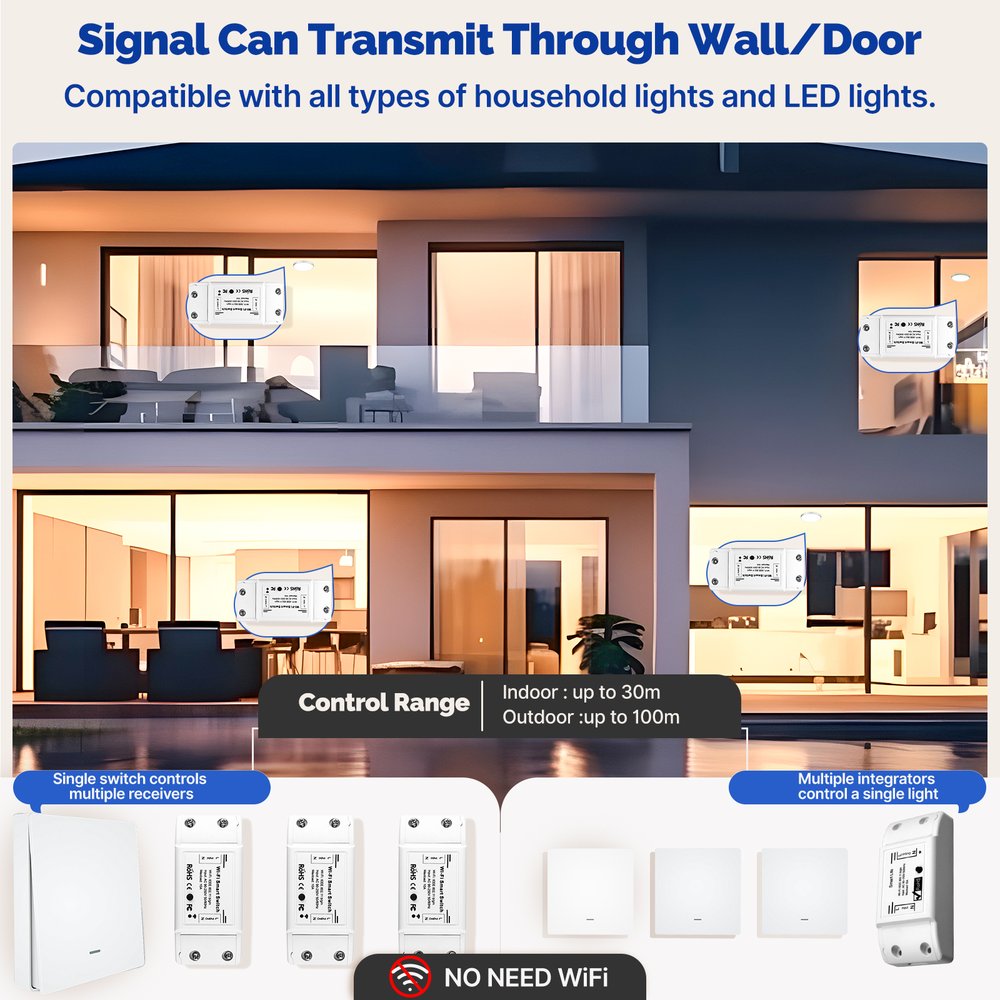 Telecomando Interruttore 1 Tasto, RF 433MHz, TUYA, Smart Life, 3V Con Pile CR2032, 86x86x16mm, IP20, SH4491