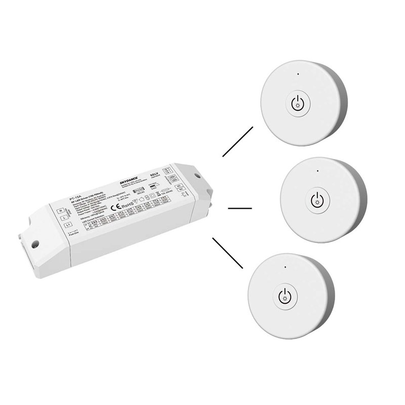 - Questo Mini Telecomando RF A Frequenza 2.4Ghz Mono Canale è Compatibile Con Alimentatori Skydance Per Gestire Le Accensioni O L’Intesità Luminosa Fino a 30 Metri Di Distanza