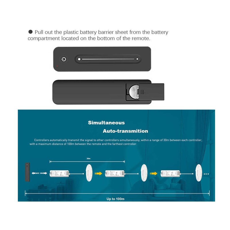 - Questo Telecomando RF A Frequenza 2.4Ghz Mono Canale è Progettato Per Associare Alimentatori Di Skydance Per Regolare La Striscia Led Mono Colore