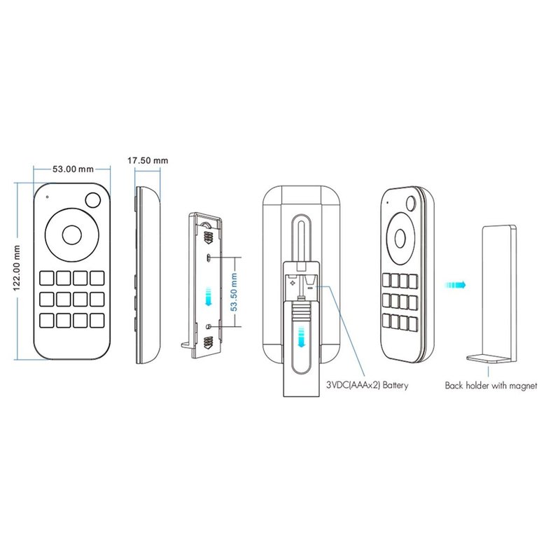 - Disegno Elegante Colore Nero, Dimensione 122X53X17.5mm, Porta Telecomando Da Parete Incluso, Alimentazione Con 2 Pile Batterie AA (Incluse).