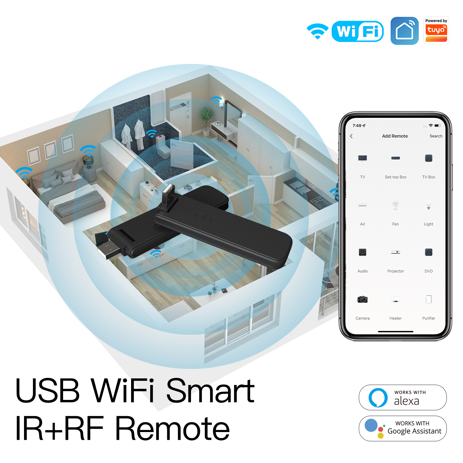 Telecomando USB Smart Controller Remote WIFI IR RF433 RF315 WIFI,IR,RF433,RF315 TUYA, Smart Life 5V USB IP20 114X30X10mm