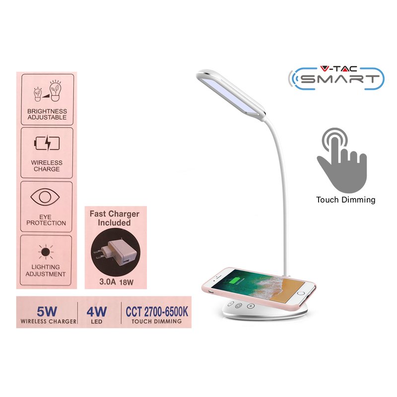 Lampada Led Da Tavolo 4W CCT Dimmerabile Con Caricatore Wireless QI Smartphone Base Rotondo SKU-8605