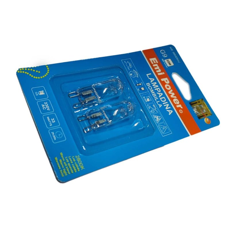 2 PZ Lampade Alogena Dimmerabile G9 33W 460 Lumen Bianco Caldo 2800K