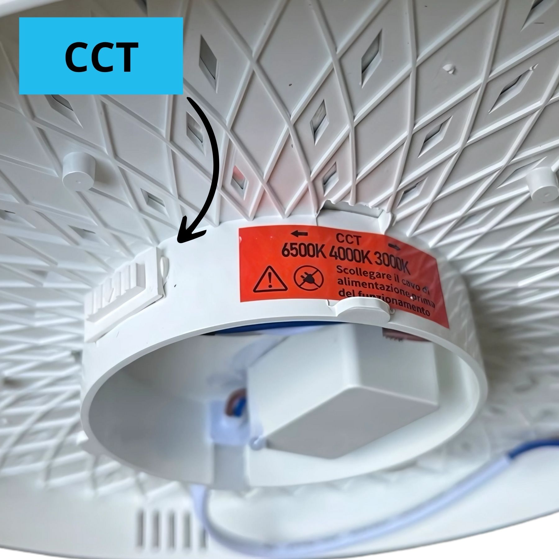 - Plafoniera LED CCT 3 in 1: selettore integrato per scegliere la temperatura colore tra luce calda 3000K, neutra 4000K o fredda 6500K, adattando l’illuminazione all’ambiente e alle esigenze di utilizzo.