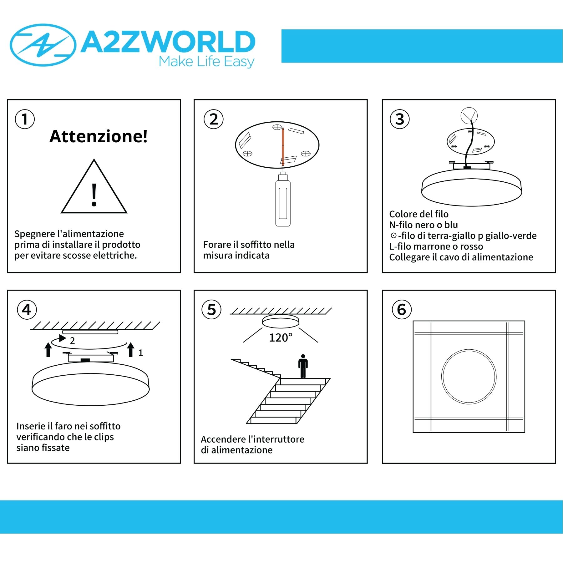 - Serie professionale A2ZWORLD: alimentazione diretta 220–240V AC, certificazioni CE e RoHS, durata garantita 3 anni. Risparmio energetico (classe D) e lunga durata per ridurre consumi e manutenzione.