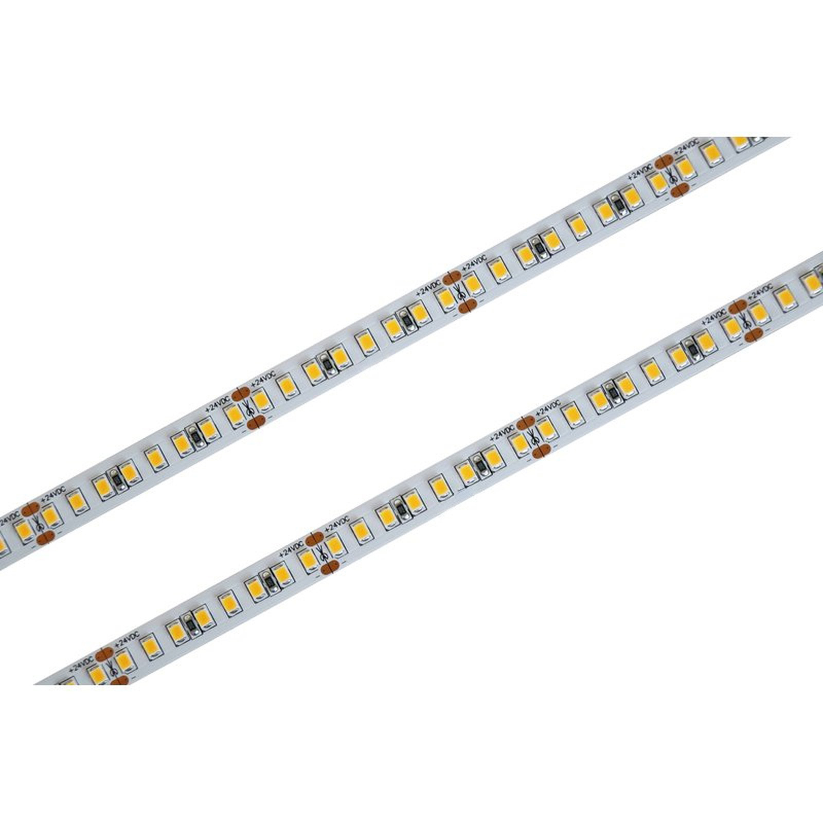 Bobina Striscia LED 24V da 10 Metri, 12W/M, Dimmerabile PWM, Tagliabile ogni 5cm, IP20, Efficienza 160lm/W, CRI>80, CE, Larghezza 8mm, 3000K Bianco Caldo MS12463