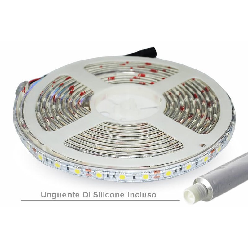 Bobina Striscia Led 300 SMD 5050 12V 10,8W/M Caldo 3000K IP65 Impermeabile 5 Metri Unguente Di Silicone Incluso SKU-212149