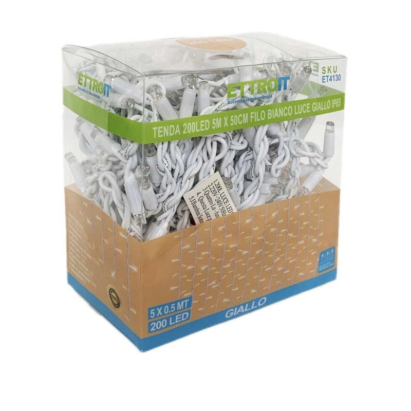 Tenda Luminosa Da Esterno IP65 5M X 0,5M Con 200 Luci Led Bianco Caldo Giallo Con Connettore Prolungabile