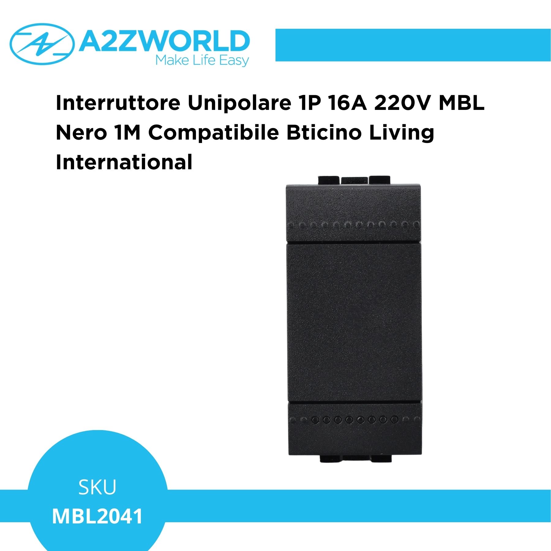 Interruttore Unipolare 1P 16A 220V MBL Nero 1M Compatibile Bticino Living International BLN0401