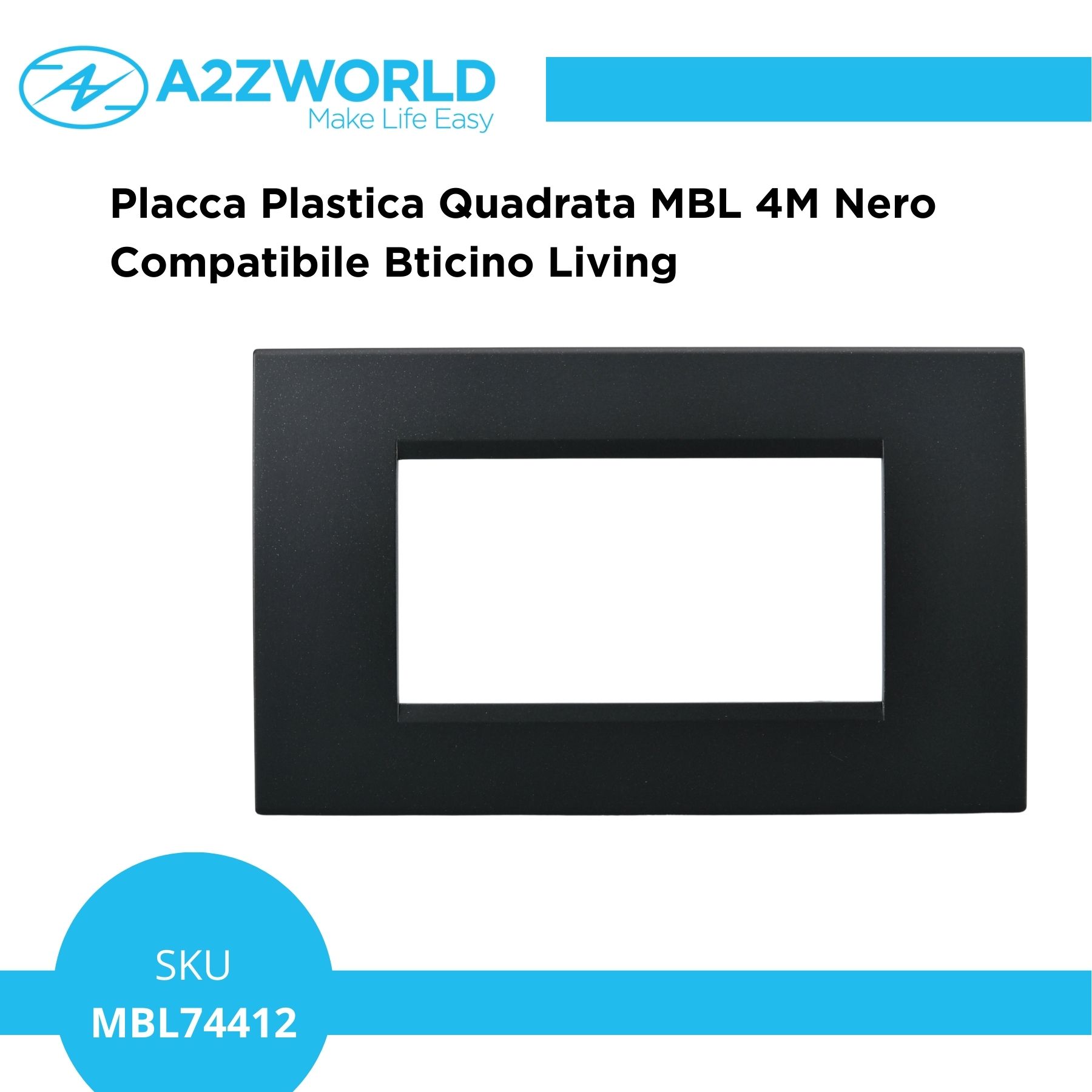 Placca Plastica Quadrata MBL 4M Nero Compatibile Bticino Living BLN89402