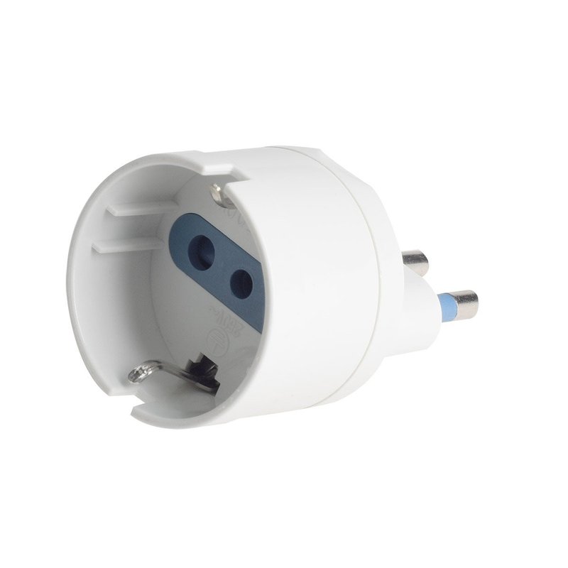 Adattatore Spina Elettrica 2P+T 16A con 1 Presa Ita 10A / Schuko 16A 2P+T 250V Max 1500W Bianco