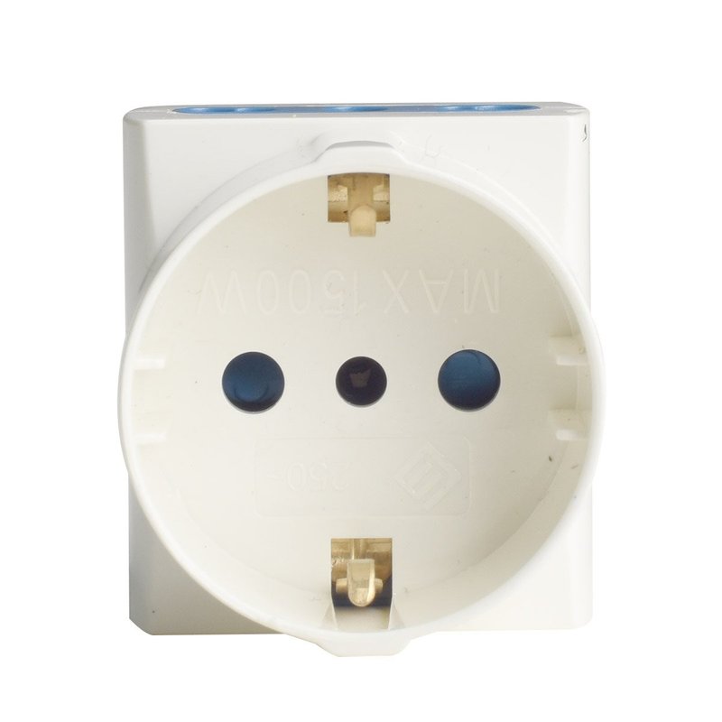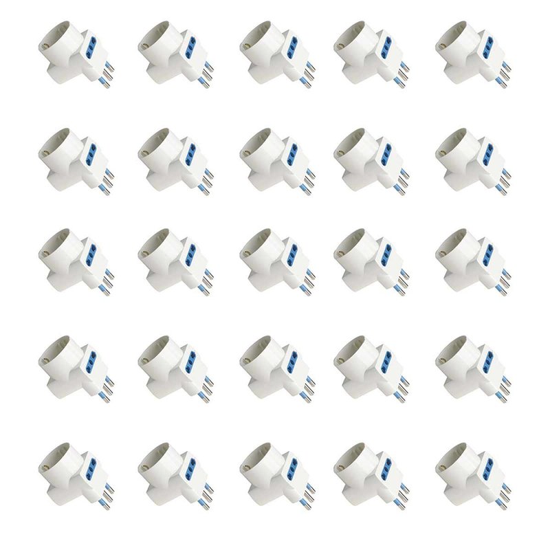 Adattatore Tripla Spina Elettrica Angolare 16A con 2 Prese Bipasso 10A/16A e 1 Presa Schuko 16A Laterale Salvaspazio