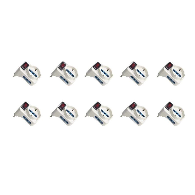 Adattatore Triplo con Interruttore Spina 10A con 2 Prese Bipasso 10A/16A e 1 Presa Universale 10A/16A Max 1500W Salvaspazio Bianco