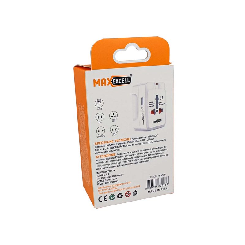 - Adattatore e Caricabatterie Universale Da Viaggio Con 1 Porta USB 5V 1A e 1 Presa AC