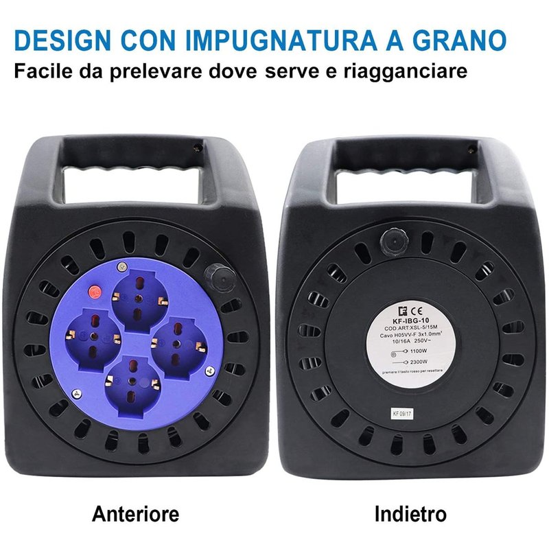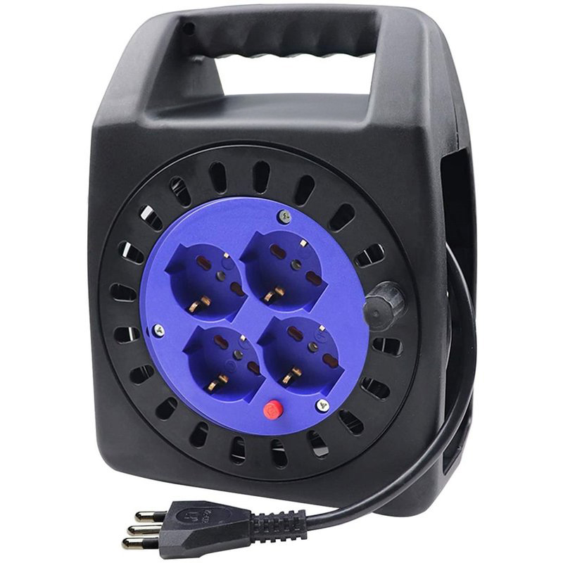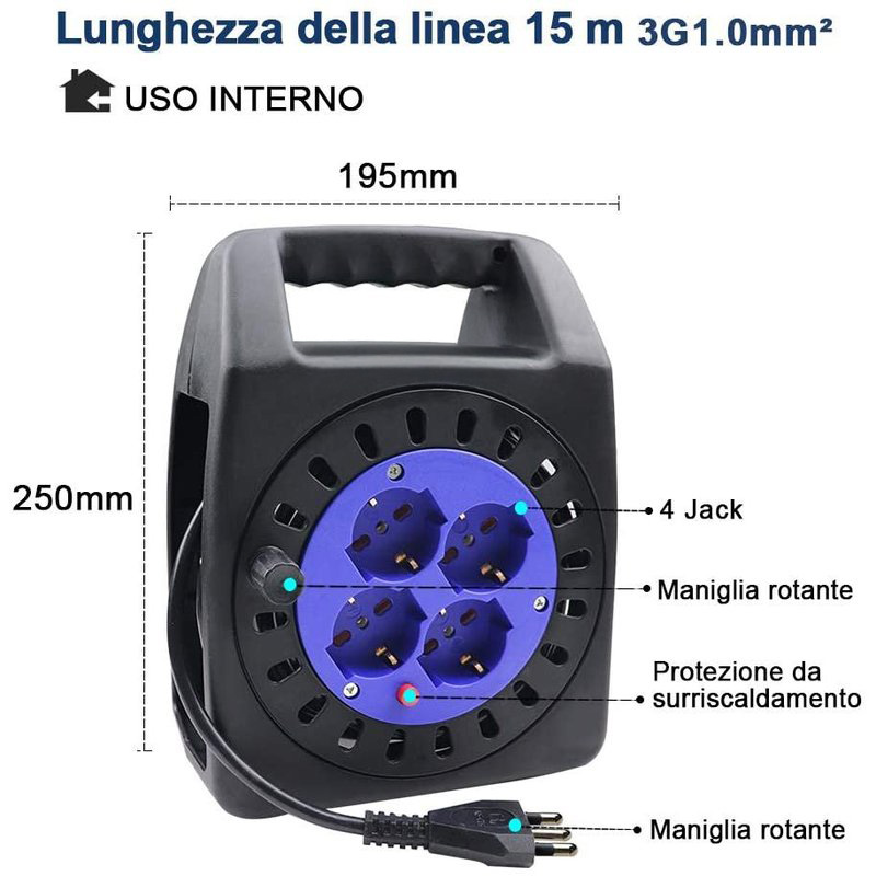 Avvolgicavo Elettrico Prolunga Elettrica 15 Metri 4 Prese Polivalenti Schuko + 10A/16A Spina 16A