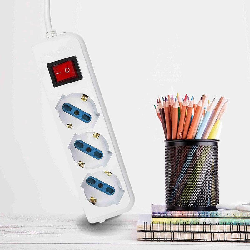 Multipresa Ciabatta Elettrica Cavo 1,5M Con 3 Posti Prese Universale 10/16A Schuko e Interruttore Spina 10A Laterale Bianco