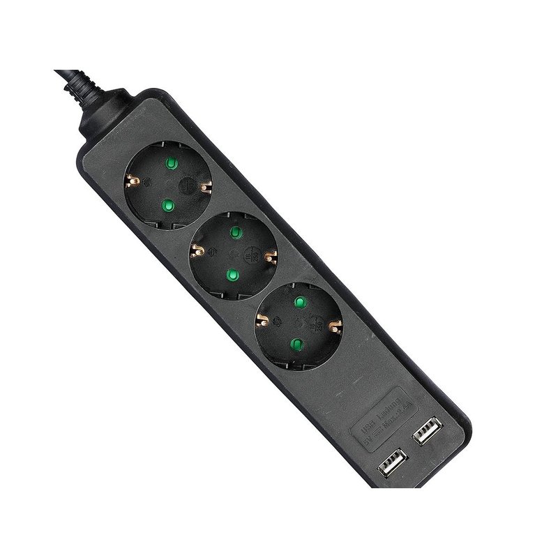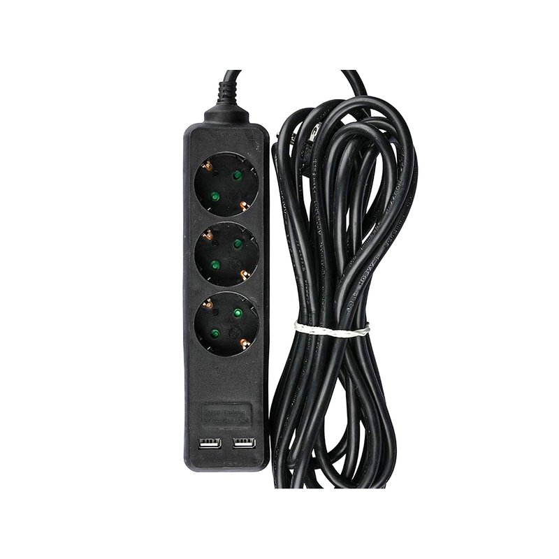 Multipresa Ciabatta Elettrica Con 2 USB e 3 Posti Schuko 10A Cavo Lunga 5 Metri Colore Nero 3X1.5 mmq SKU-8777