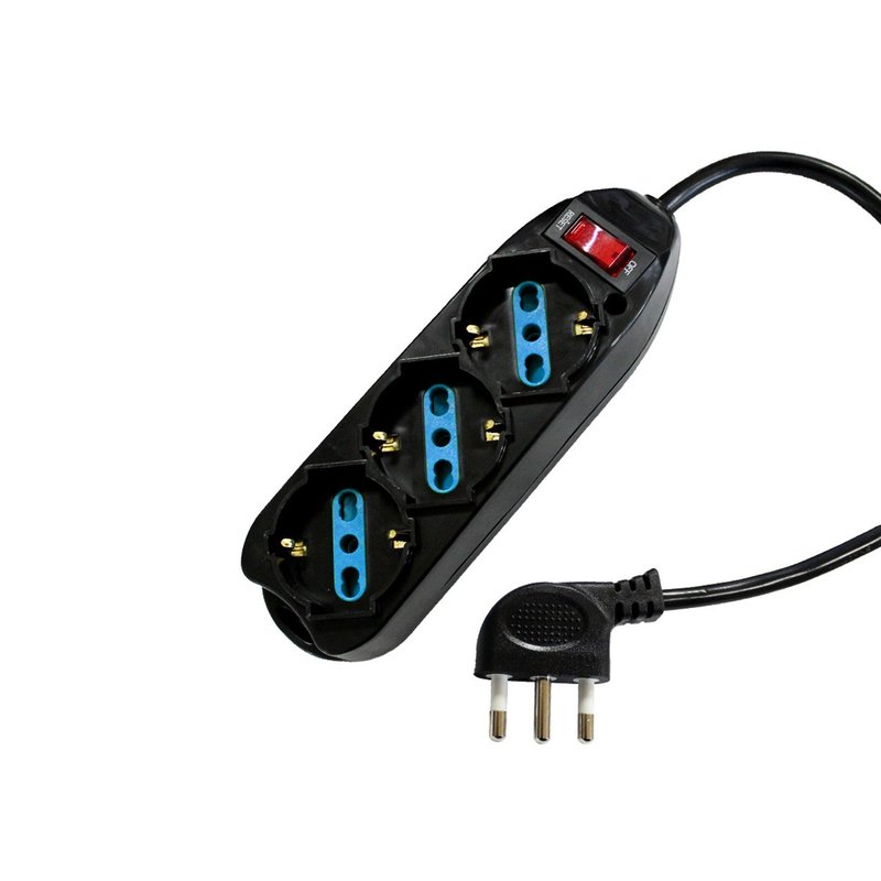 Multipresa Ciabatta Elettrica Con 3 Posti Prese Schuko 10/16A Colore Nero Interruttore Spina 10A Laterale Cavo 1,5M Nero