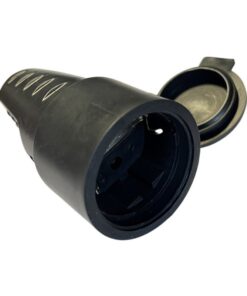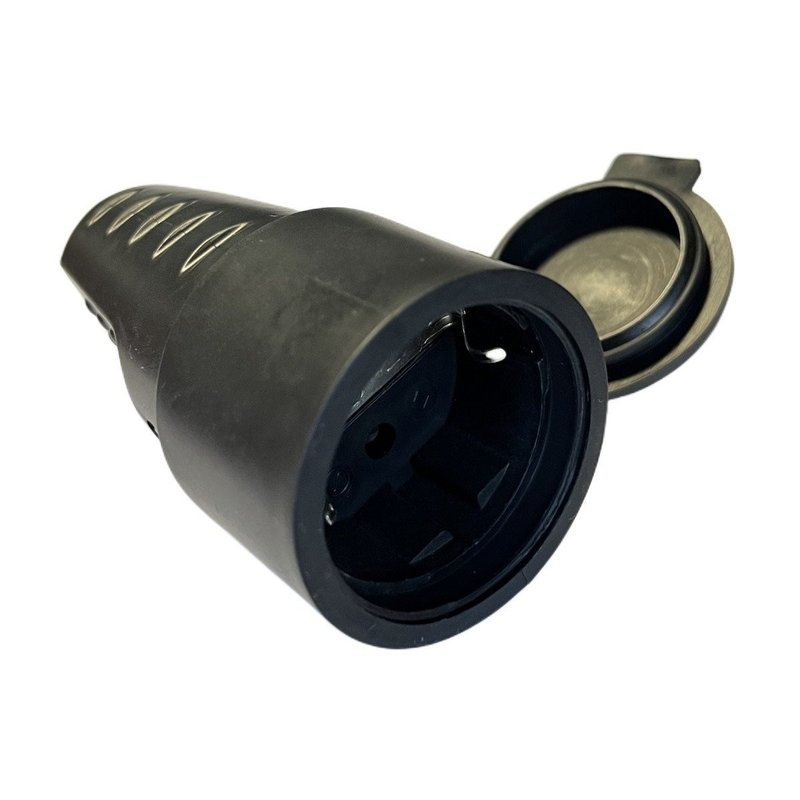 Presa Schuko Volante Con Contatto Messa A Terra Femmina IP44 Gomma AntiSpruzzo Con Copperchio 16A/250v Nera