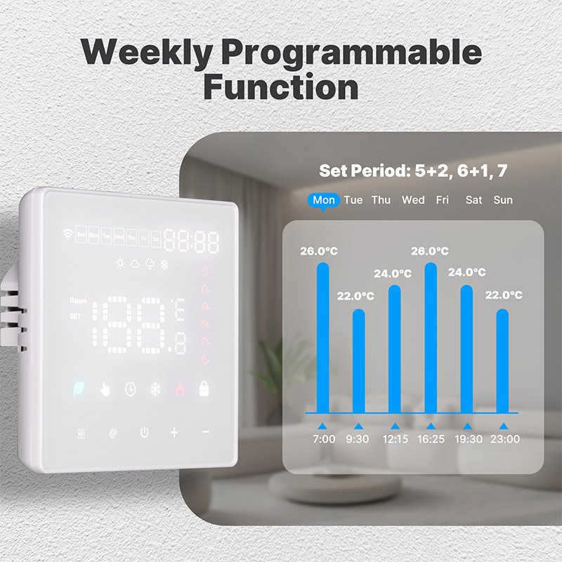 Termostato WIFI Touch Protocollo WIFI 2.4G TUYA, Smart Life Quadrata Compatibile Con Scatola 502 Riscaldamento Caldaia a Gas Riscaldamento Pavimento Con Acqua Bianco 3A 100-250V IP20