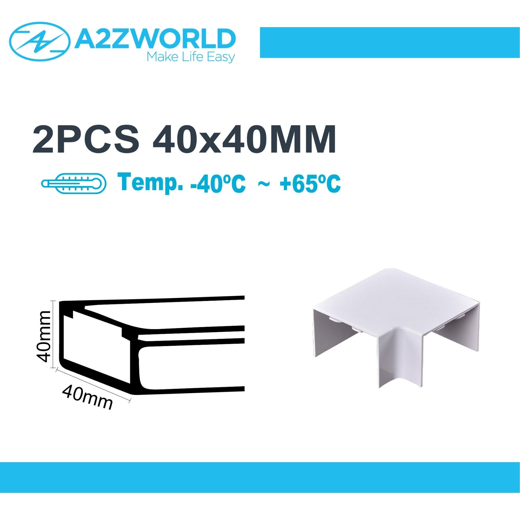 2 Pezzi Connettore Angolare Per Canaline Passacavi 40X40mm, Angolo Interno 90°, Colore Bianco