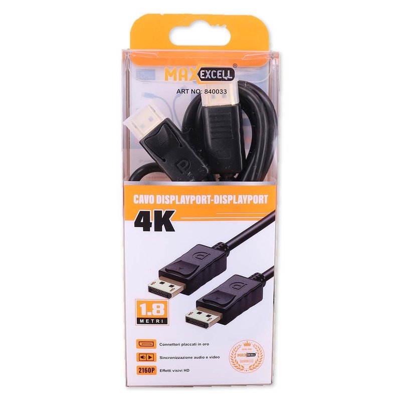 Cavo DisplayPort Placcato in Oro 4K UltraHD Audio e Video in Alta Definizione Compatibile con Monitor e Proiettori fino a 144Hz di Resoluzione 1.8m