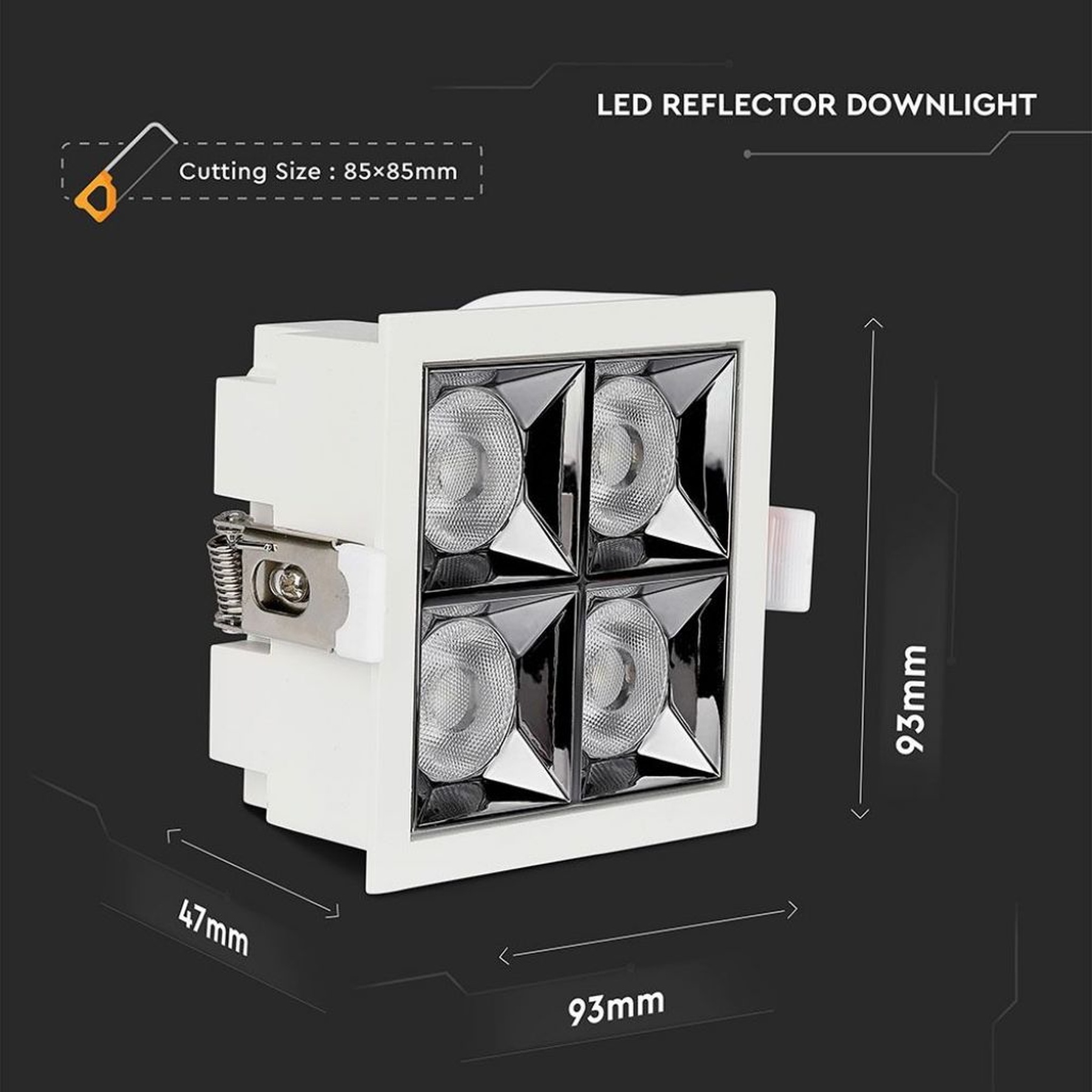 Faretto Led Da Incasso Quadrato 4X4W Neutro 4000K UGR<19 Riflettore 38° CRI>90 Chip Samsung SKU-992